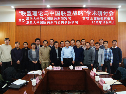2012年12月8日,由清华大学当代国际关系研究院、复旦大学国际关系与公共事务学院联合主办,清华大学中国对外政策研究中心承办的“联盟理论与中国联盟战略”学术研讨会在清华大学甲所举行。此次研讨会是两校国际关系专业旨在增进校际联合、协同创新、共建一流学科而开展的一次重要学术活动。复旦大学、清华大学、北京大学、中国人民大学、南开大学、中国社会科学院、北京语言文化大学等单位8位学者做了会议主题发言,来自全国多所高校的近百名师生参加了会议研讨。